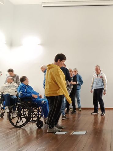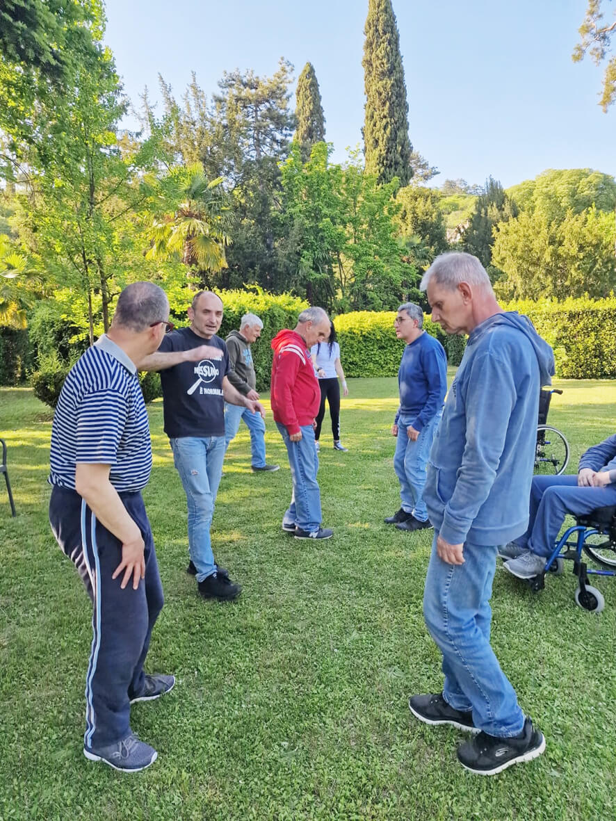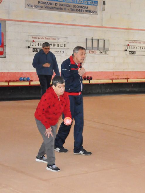 Gli ospiti dell’istituto di Medea praticano il gioco delle bocce da molti anni, grazie alla collaborazione con la Società Bocciofila ASD di Romans d’Isonzo. Attualmente, ogni martedì, alcuni dei nostri ragazzi del CRA si preparano per andare a giocare a bocce. Dopo colazione, verso le 9.15 prendiamo le borse, saliamo in pulmino e ci dirigiamo presso il bocciodromo di Romans di Isonzo. Una volta arrivati a destinazione, per prima cosa prepariamo le corsie, controlliamo chi si è già sfidato nelle partite giocate in precedenza e creiamo le coppie che giocheranno durante la mattinata. Ogni allenamento inizia sempre con un breve riscaldamento che ci permette di prepararci per affrontare al meglio le partite che si disputeranno durante la mattina. I ragazzi si sfidano sempre con uno spirito di sana competizione che tira fuori aspetti della loro personalità sempre nuovi e molto interessanti e che favoriscono lo sviluppo di abilità socio-relazionali.