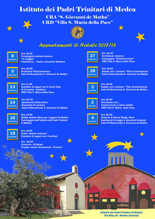 L'Istituto dei Padri Trinitari di Medea augura a Voi e alle Vostre Famiglie i più sinceri Auguri di Buone Feste per un Natale assieme Vi invita a partecipare agli eventi in programma.