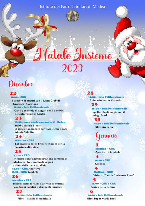 L'Istituto dei Padri Trinitari di Medea augura a Voi e alle Vostre Famiglie i più sinceri Auguri di Buone Feste per un Natale assieme Vi invita a partecipare agli eventi in programma.